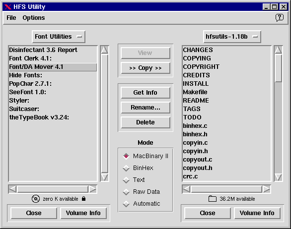 line. Files can be copied using a variety of transfer modes (MacBinary,